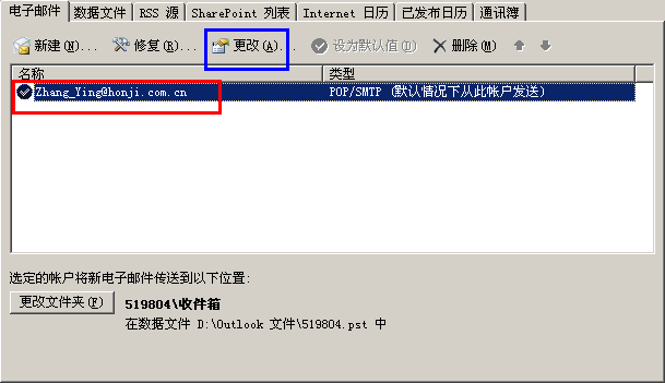 选中邮箱账号,点击更改