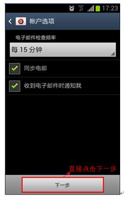 8.根据您的需要设置账户选项,再点击【下一步】。