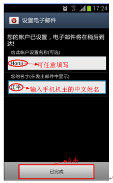 4.输入您的电子邮箱地址和密码,用户名为自己名字不带姓(名字为一个字的需带姓)的拼音字母加后缀@honji.com.cn。